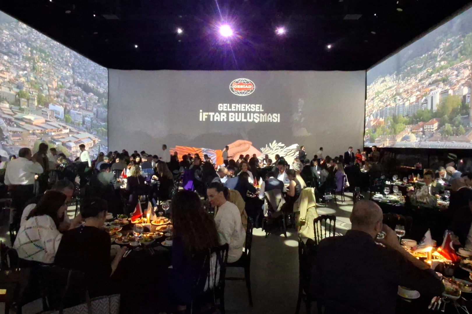 GESİAD Yönetim Kurulu Üyesi Sinan Alp ise yaptığı konuşmada, "Bu akşam, unuttuğumuz değil ama hatırlamakta zorlandığımız bir organizasyon yapmak istedik. Geçen hafta yönetim kurulu ile beraber depremin yaşandığı bölgedeydik. Orada çocuklarla görüştük. Ne istediklerini sorduk. Bayramın ikinci ve üçüncü günü, Adıyaman'daki çocuklarımız için güzel bir organizasyon düzenlenecek. Aile üyelerini kaybetmiş insanlarımız var. Birçok farklı kesimden insanla bir aradaydık. Onların dertlerini paylaştık. Bu organizasyonları elimizden geldiğince yapmaya çalışıyoruz. Etkinlikte salonun ışıkları kapatıldı ve depremle ilgili videol. ar ekranlara yansıtıldı. Biz hep ışıkların altında yaşadığımız için, o karanlığı buradaki dernek üyelerine aktarmak istedik" diye konuştu.