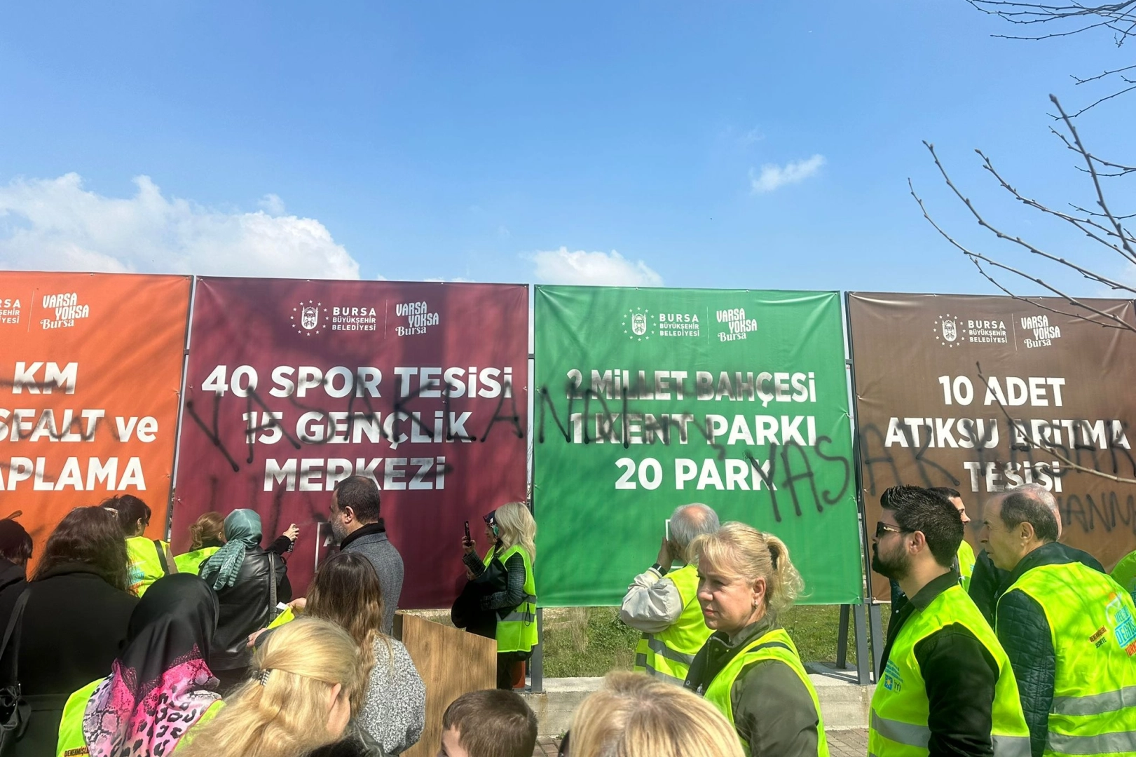 Bursa Büyükşehir Belediyesi, mevcut proje ve çalışmaları içeren tanıtım tabelalarına sprey boyayla zarar veren İYİ Parti Büyükşehir Belediye Başkan adayı Selçuk Türkoğlu'nu kınadı.