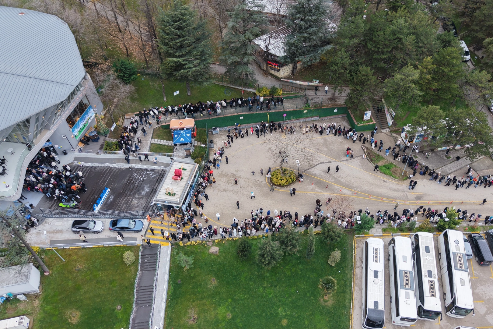 Sabahın ilk ışıklarıyla birlikte teleferik tesislerine gelen vatandaşlar uzun kuyruklar oluştururken, güvenlik gerekçesiyle içeri sınırlı sayıda yolcu alındı. Bu durum kuyrukların giderek uzamasına neden oldu. Uludağ'da kar kalınlığının 45 santimetreyi aştığı belirtilirken, hava sıcaklığının ise eksi 5 derece ölçüldüğü açıklandı. Soğuk havaya rağmen zirveye çıkmak isteyen vatandaşlar, güzel bir hafta sonu geçirmek için beklemeye değdiğini ifade etti. Yaklaşık yarım saattir sırada beklediklerini söyleyen vatandaşlar, arkadaşlarıyla teleferikle zirveye çıkmanın ayrı bir deneyim sunduğunu dile getirdi.