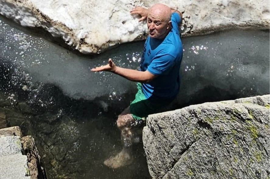 Saklı Göl ve Buzlu Göl'e geldiklerinde gölün bir kısmının hala buzlarla kaplı olduğunu ekip, gerekli önlemler aldıktan sonra buz kaplı gölde hem yürüdü hem de yüzdü.