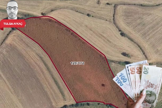 120 ada 172 parsel nolu tarlanın 13 bin 331 metrekare olduğunu belirten vergi dairesi, taşınmaza 1 milyon 996 bin TL rayiç bedel biçildiiğini açıkladı.