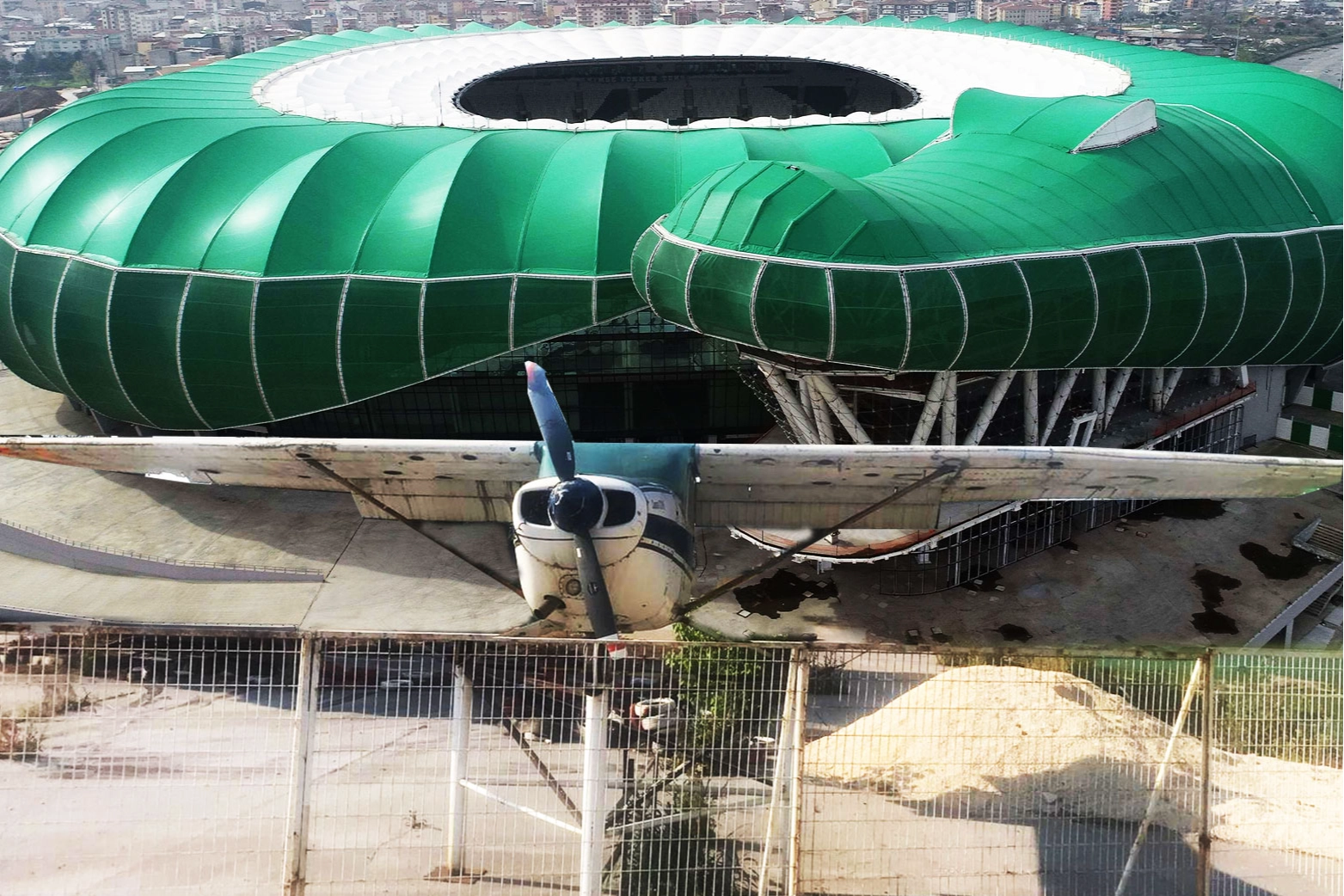 Bursa Seyyahı adlı sosyal medya fenomeni, Osmangazi ilçesine Dikkaldırım Mahallesi'nde bulunan Yüzüncü Yıl Atatürk Stadyumu'nun bahçesindeki uçağın hikayesini anlattı.