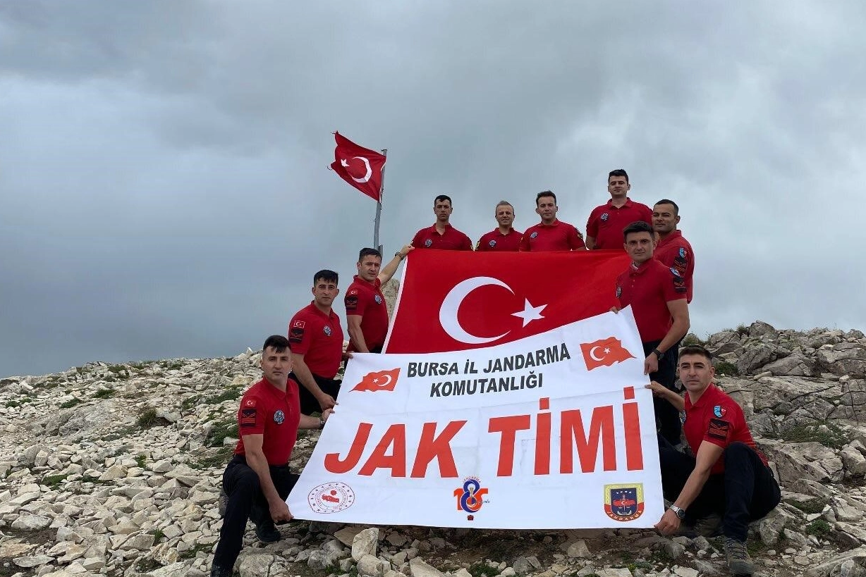 Jandarma Teşkilatı'nın 185. kuruluş yıldönümü nedeniyle, Bursa İl Jandarma Komutanlığına bağlı Jandarma Komando Arama Kurtarma (JAK) ekipleri Uludağ’da zirveye tırmandı.