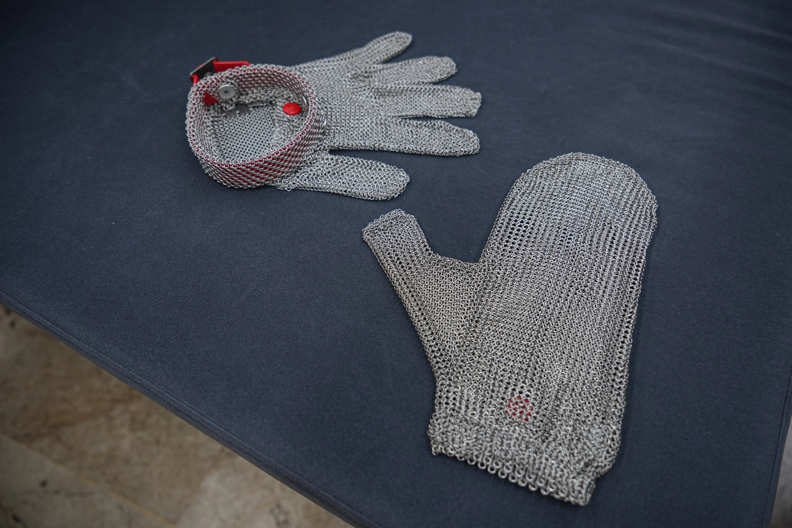 Profesyonel kasapların çelik eldiven kullandığını belirten Pirge, "Çelik eldiven, genellikle sol elle kullanılır. Bıçağı sağ eliyle tutanlar sol elle takar. Sol eliyle tutanlar sağ elle takar. Çelik eldiven tek üretilir çift olmaz. Onun için bıçağın eli kesmesini engelleyici bir unsurdur. Genelde profesyoneller kullanılır. Kesilmeyen ipli eldivenler de var ama çelik eldivenler daha sağlıklı ve daha uzun ömürlü. Bir de bıçağa karşı da daha dirençli fakat fiyatı yüksek görülüyor. Ortalama 4 bin lira ile 6 bin lira arasında bir fiyatı var" dedi.