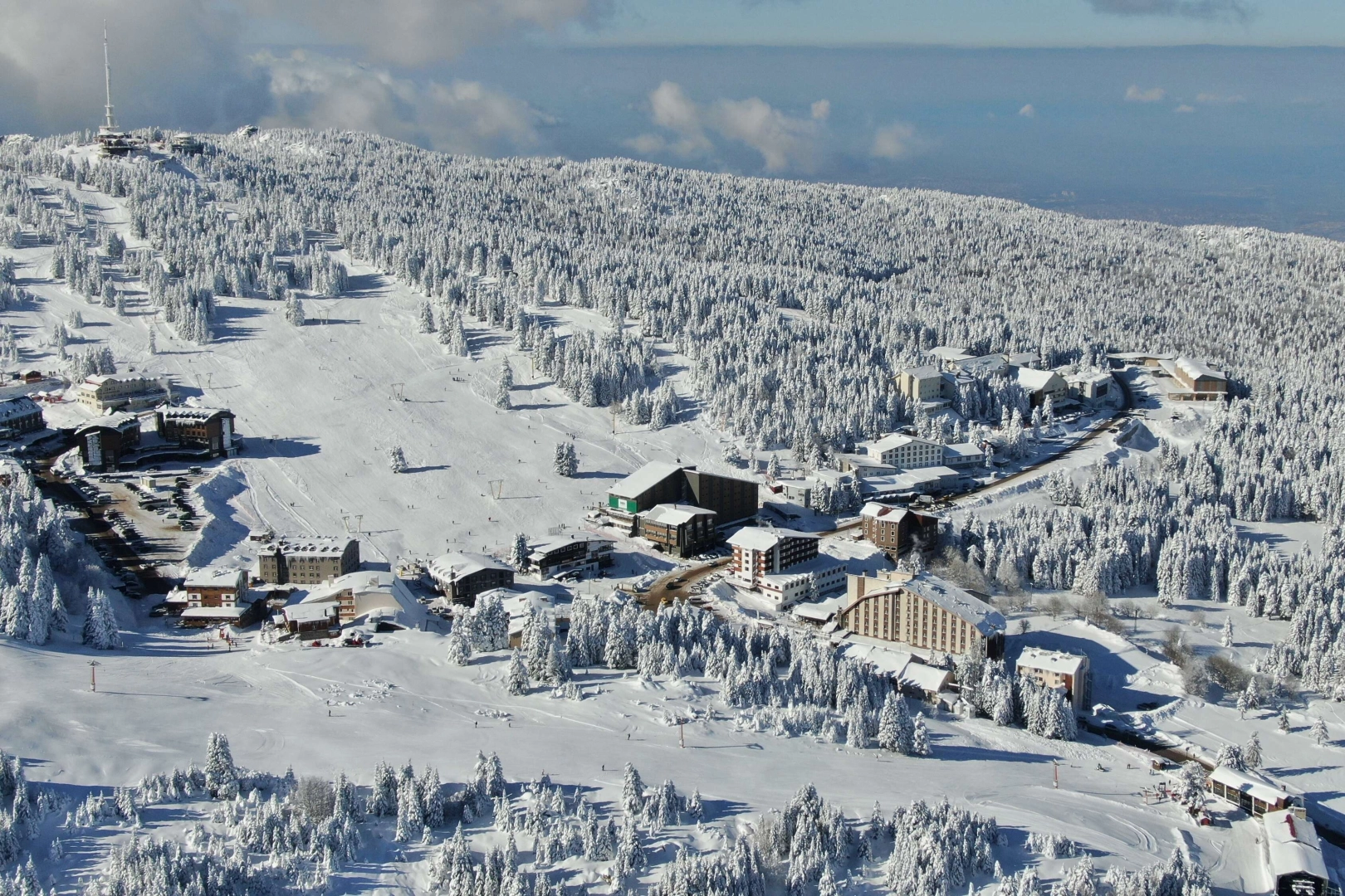 Her yıl binlerce yerli ve yabancı turisti ağırlayan Uludağ, kar yağışıyla beyaza büründü.