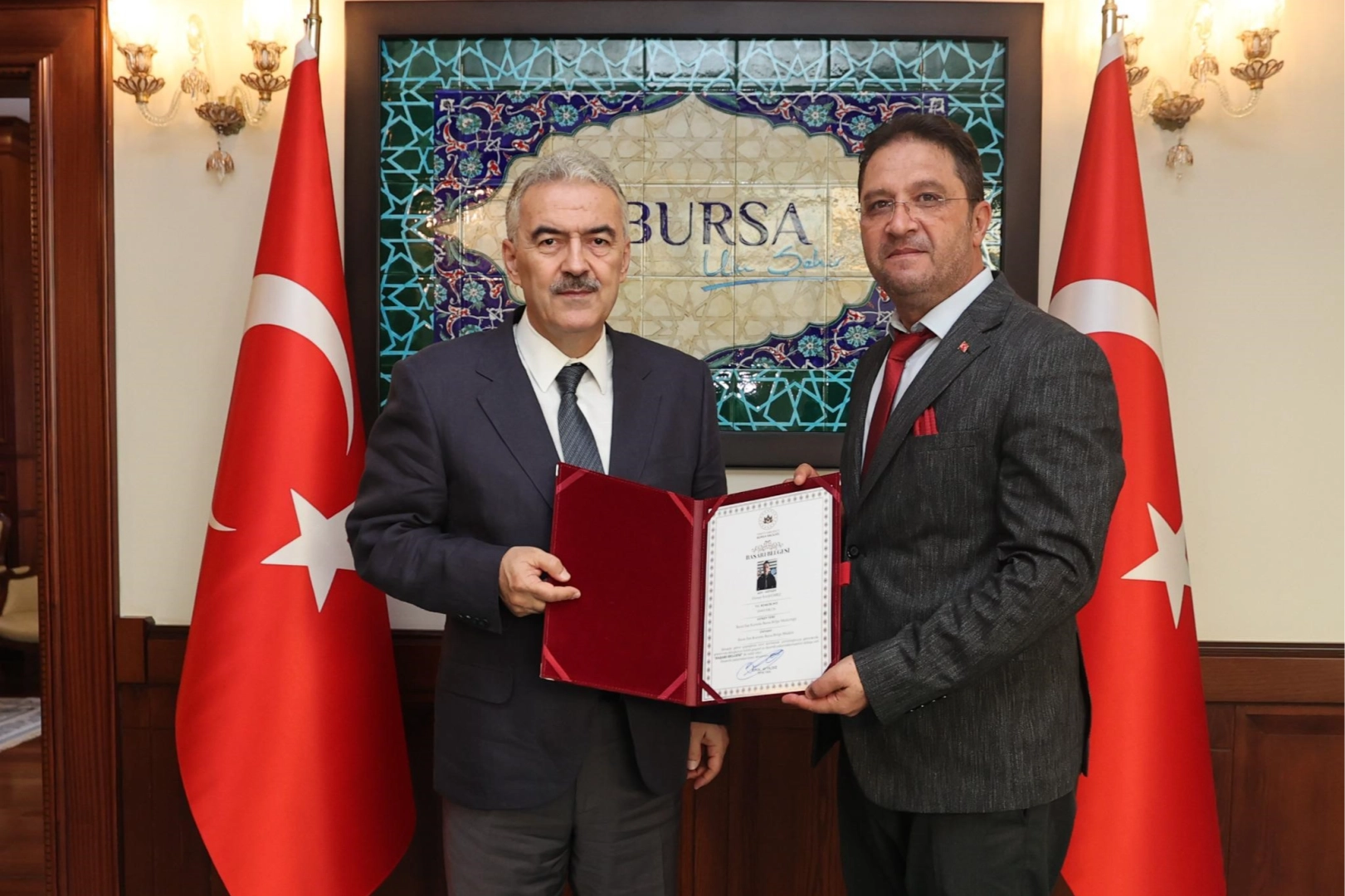 Ziyaret sırasında Vali Ayyıldız, Bursa’da görev yaptığı süre boyunca gerçekleştirdiği başarılı çalışmalar ve kuruma katkılarından dolayı Osman Başeğmez’e teşekkür ederek, kendisine başarı belgesi takdim etti.
