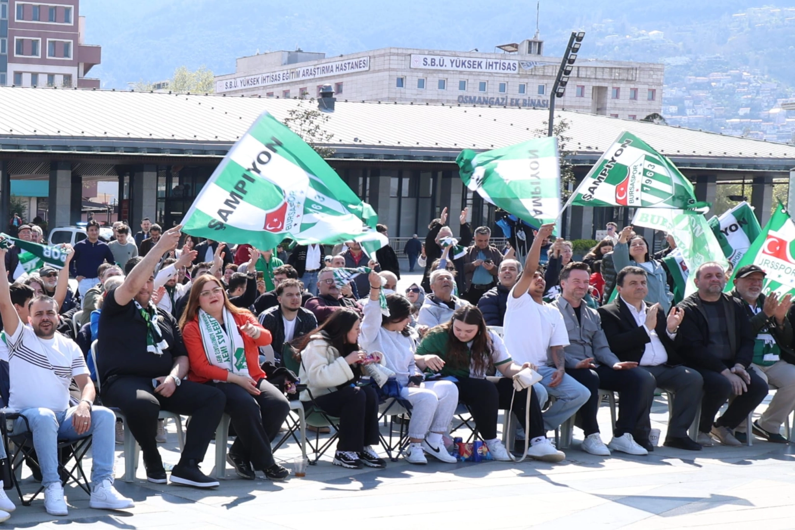 Maçın bitiş düdüğüyle birlikte Osmangazi Meydanı’nı dolduran taraftarlar büyük sevinç yaşarken, ortaya renkli ve coşkulu görüntüler çıktı.