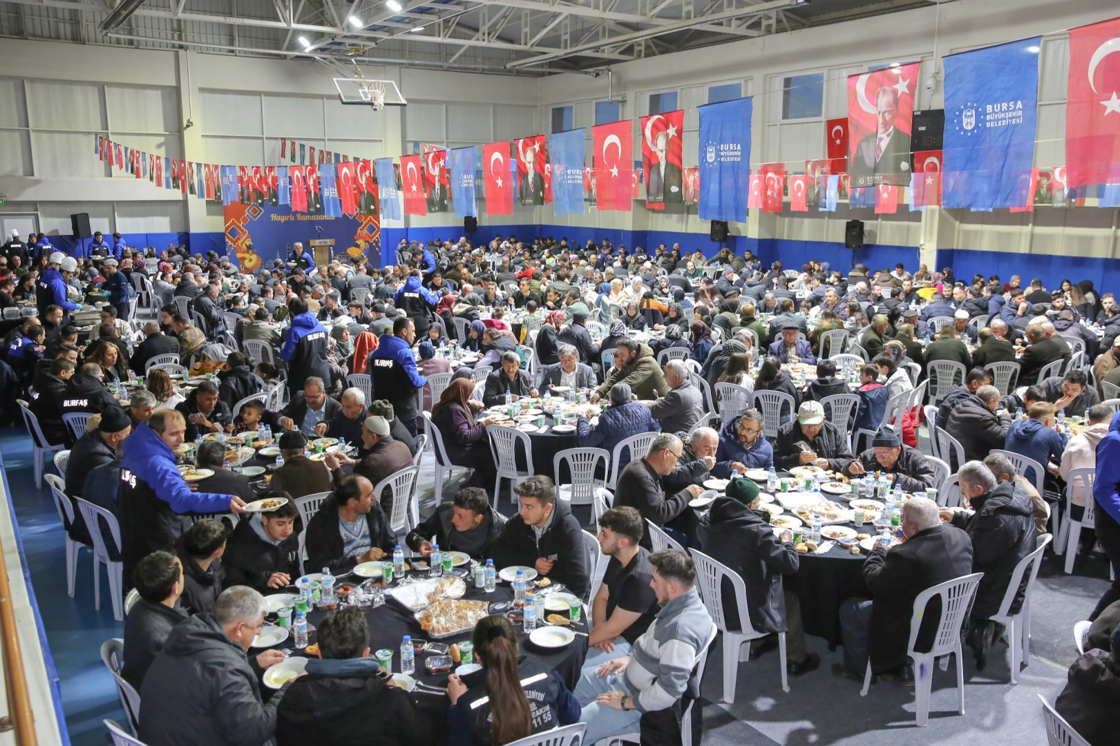 Bursa Büyükşehir Belediyesi tarafından Büyükorhan Kapalı Spor Salonu’nda düzenlenen programa, Bursa Büyükşehir Belediyesi Başkanvekili Mehmet Aydın Saldız, Büyükşehir Belediyesi bürokratları, Büyükşehir iştiraklerinin yöneticileri, siyasi parti temsilcileri, meclis üyeleri ve sivil toplum kuruluşlarının temsilcileri katıldı. İftar programı samimi bir ortamda gerçekleşirken, akşam ezanıyla birlikte vatandaşlar oruçlarını açtı.