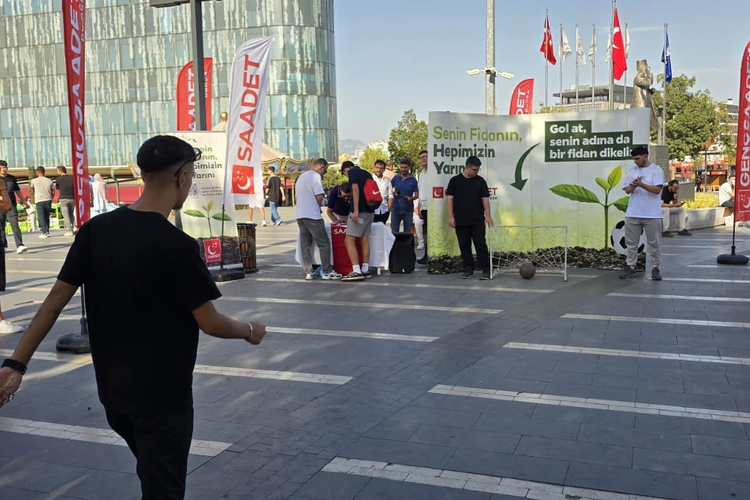 Vatandaşların yoğun ilgi gösterdiği etkinlikte, kurulan platformda atılan her gol karşılığında fidan dikileceği dile getirildi.
