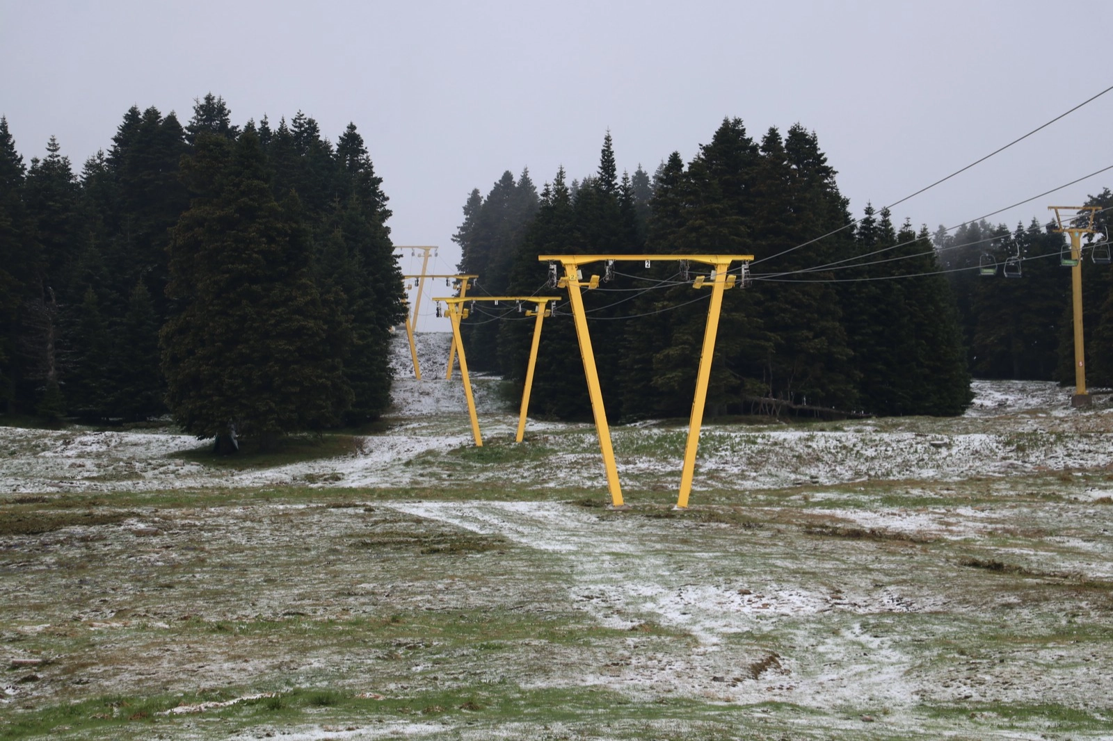 Uludağ'da gece başlayan sağanak, sabah saatlerinde havanın soğumasıyla yerini kara bıraktı.