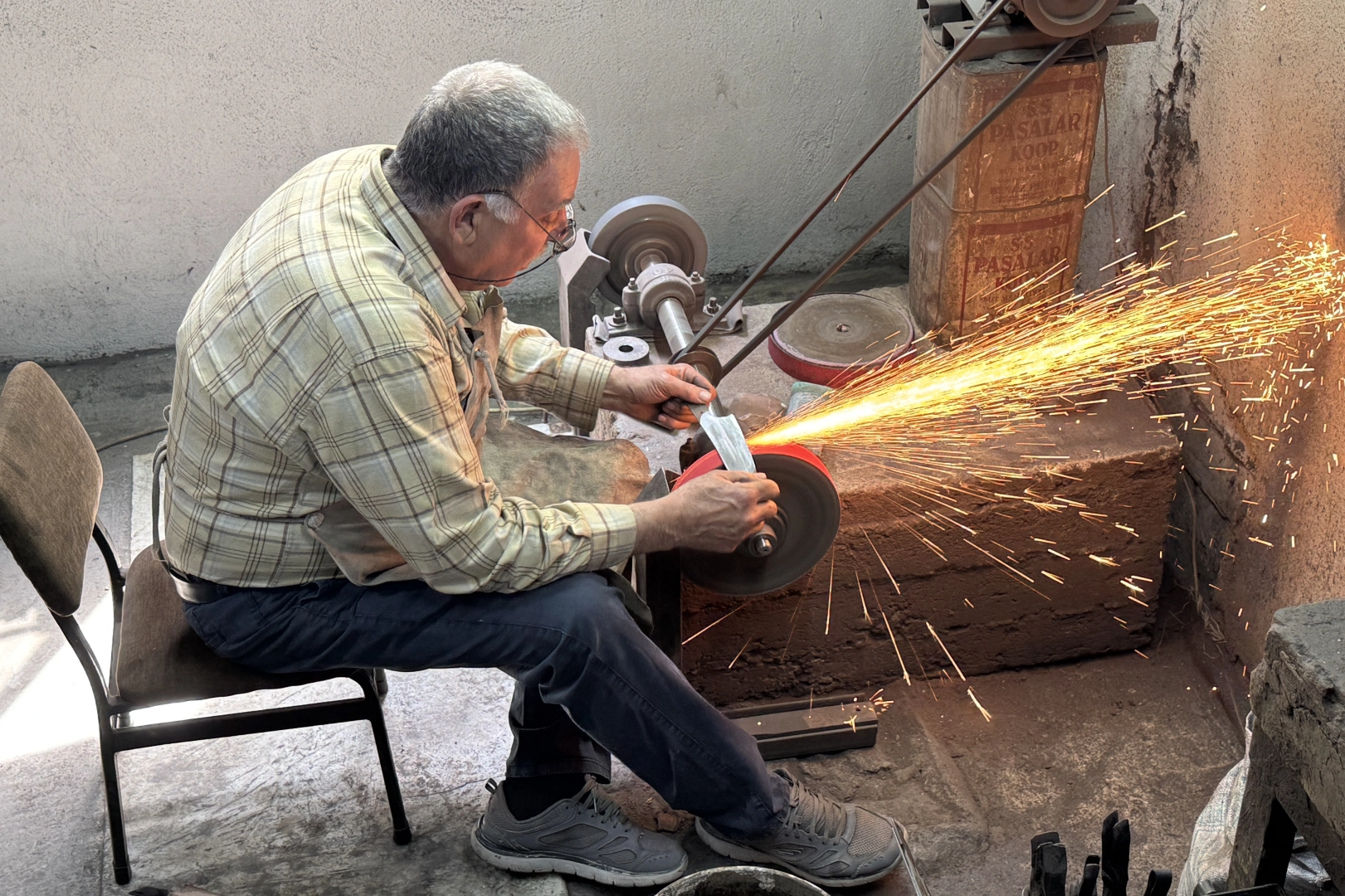 İsmet ve Hikmet Şeref, kestane kömürüyle yakılan ateşle yaptıkları ısıl işlemin ardından damgalama, parlatma, sap takma ve bilemeyle kullanıma hazır hale getirilen bıçakları, yurdun dört bir yanına gönderiyor.