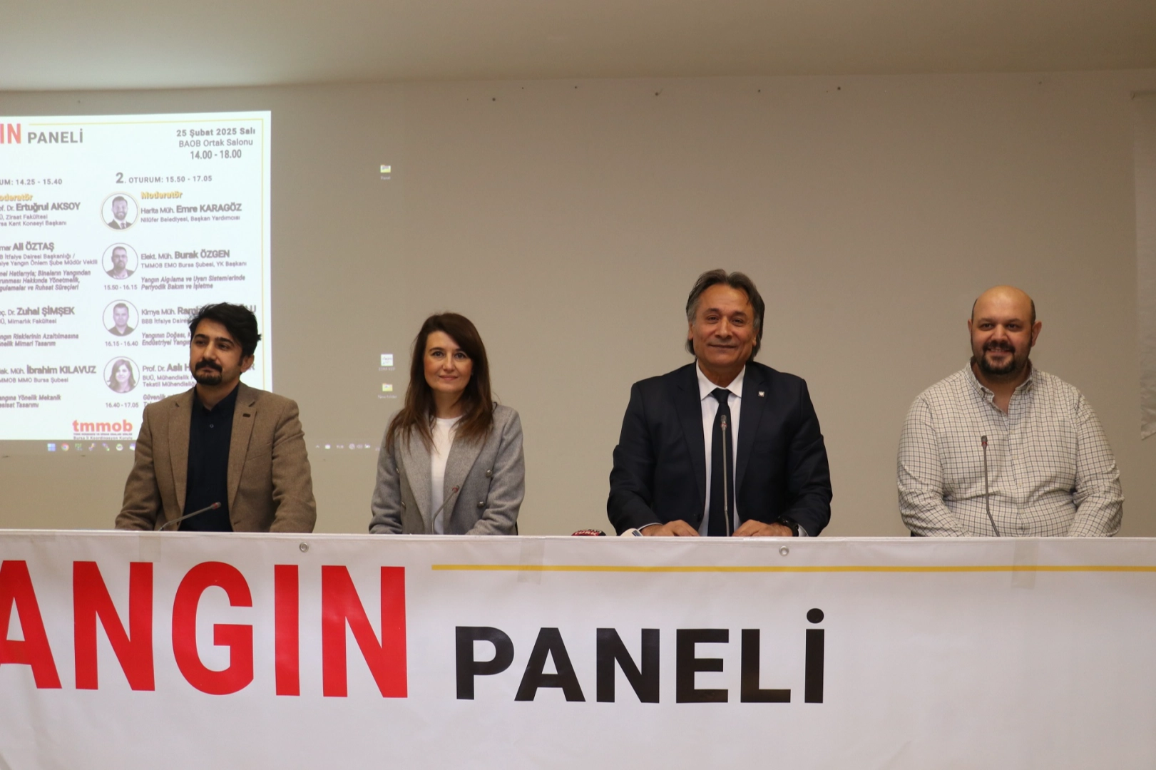 Bursa Akademik Odalar Birliği (BAOB) Ortak Salonu'nda düzenlenen 'Yangın Paneli' Bursa Büyükşehir Belediye Başkan Vekili Mustafa Orkun Gazioğlu, TMMOB Bursa İl Koordinasyon Kurulu Sekreteri Murat Korkut, Mimarlar Odası Bursa Şubesi Başkanı Şirin Rodoplu Şimşek, Bursa Büyükşehir Belediyesi İtfaiye Daire Başkanı Canalp Berkdemir, İtfaiye Daire Başkanlığı görevlileri ve çok sayıda akademik odanın yöneticisi ve üyelerinin katılımıyla yapıldı. Muhtarlar ve apartman site yöneticilerinin de katılım gösterdiği panelin açılışında konuşan TMMOB Bursa İl Koordinasyon Kurulu Sekreteri Murat Korkut, "34 gün önce yaşanan ve hepimizi derinden etkileyen Bolu Kartalkaya'daki yangın faciası, bu konuda bilinçlenmenin ve tedbirleri eksiksiz şekilde uygulamanın önemini bize bir kez daha gösterdi. Mühendislik ve mimarlık alanındaki bilgileri kamuoyuna sunmayı ve yangın güvenliği konusunda çözüm önerilerini paylaşmayı büyük bir fayda olarak görüyoruz. Bu panelin, yangın güvenliği kapsamında çözüm önerileri geliştirmek konusunda önemli adımlar sağlayacağını düşünüyorum" dedi.