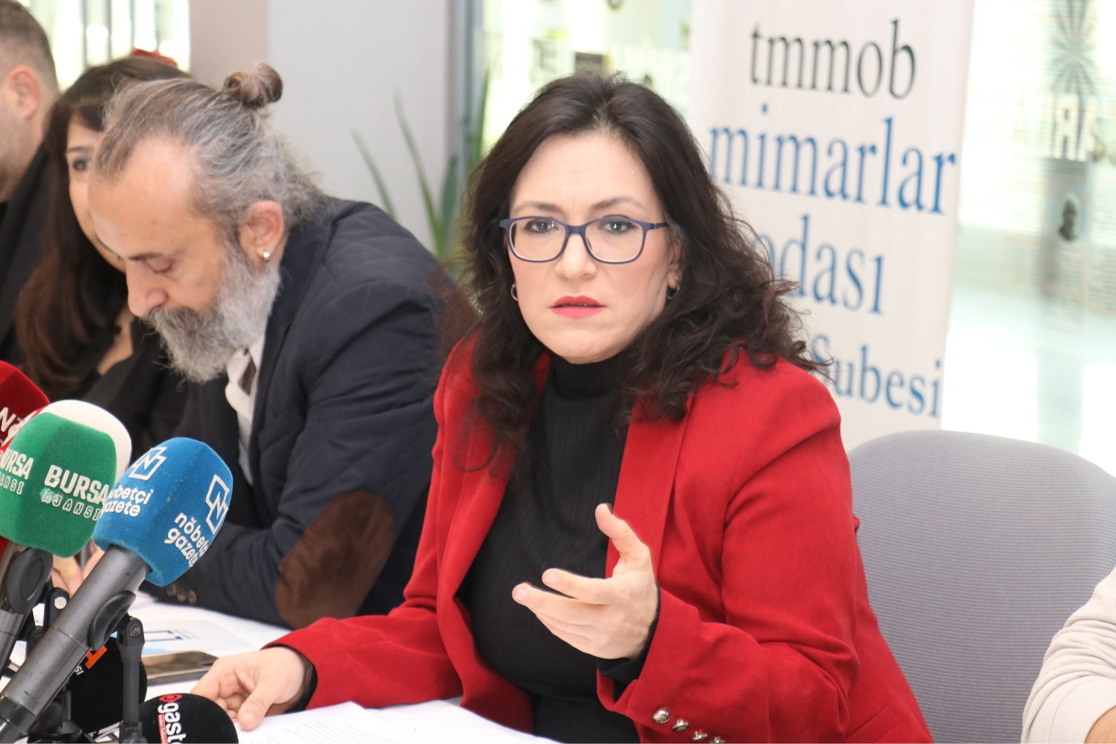 TMMOB Mimarlar Odası Bursa Şube Başkanı Şirin Rodoplu Şimşek, konuşmasının ardından gazetecilerin sorularını yanıtladı.