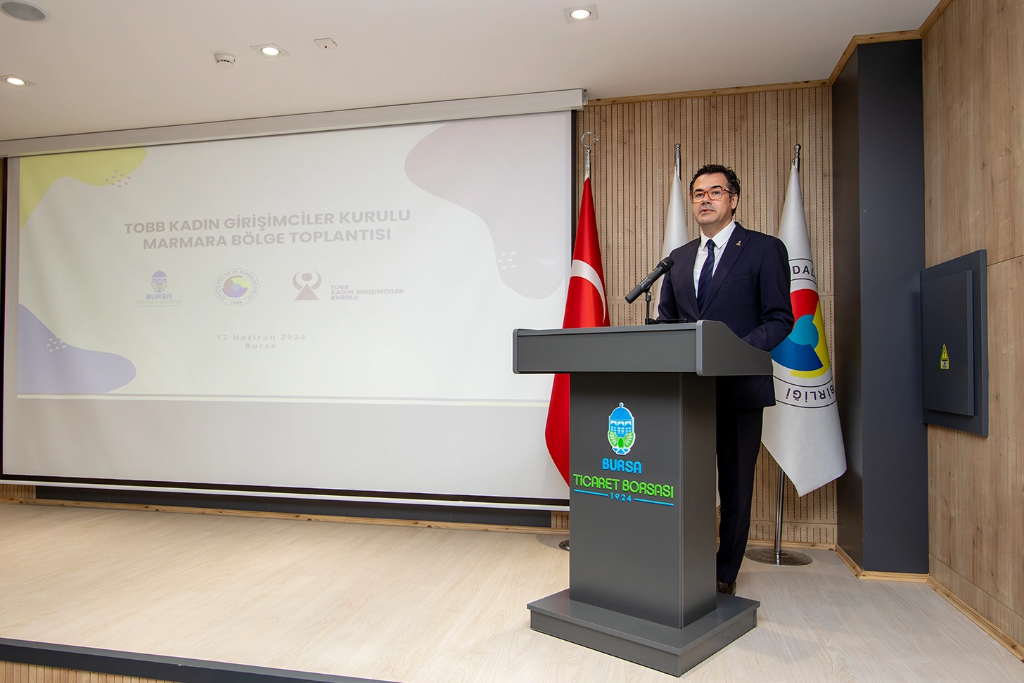 Toplantının açılışında konuşan Bursa TB Yönetim Kurulu Üyesi Gökhan Onur, kadın girişimcilere verdikleri önemi vurguladı. Kadınların iş hayatında yer almasının yalnızca ekonomik kalkınmanın değil, toplumsal refahın anahtarı olduğunu belirten Onur, “Kadının iş gücüne aktif katılımı, ekonomik büyümeyi hızlandırırken, aynı zamanda sosyal adaleti ve toplumsal dengeyi de sağlamaktadır. Bizler, kadın girişimcilerimizin gücünü artırmak için buradayız. TOBB Başkanımız M. Rifat Hisarcıklıoğlu'nun da belirttiği gibi “Aklın ve başarının cinsiyeti olmaz, kadın güçlü olursa toplum ve ülke güçlü olur”. Başkanımız, kadın girişimciliğinin önemini her fırsatta vurgulamakta ve oda-borsalarımızın yönetimleri olarak bizlerden de aynı hassasiyeti beklemektedir. Birlikte çok daha güçlüyüz. Bu gücün, ülkemizin sürdürülebilir kalkınma hedeflerine ulaşmasında kritik bir rol oynadığına inanıyoruz. Cumhuriyetimizin Kurucusu Ulu Önder Mustafa Kemal Atatürk'ün ifade ettiği gibi, “Dünyada her şey kadının eseridir”. Bizim görevimiz ise, bu değerli eseri koruyup, yüceltmektir” diye konuştu.