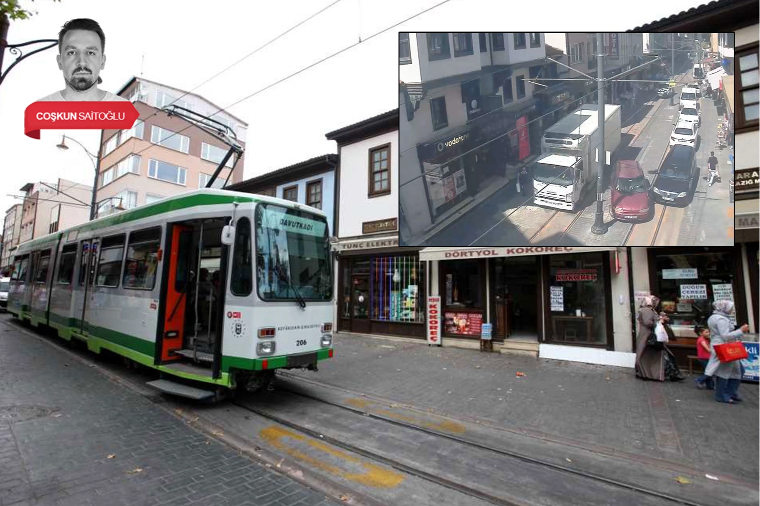 Bursa'nın tarihi hanlar bölgesinin kalbinde yer alan alan Cumhuriyet Caddesi, tramvay seferlerinin durmasını fırsat bilen sürücüler yüzünden resmen otoparka dönüştü.