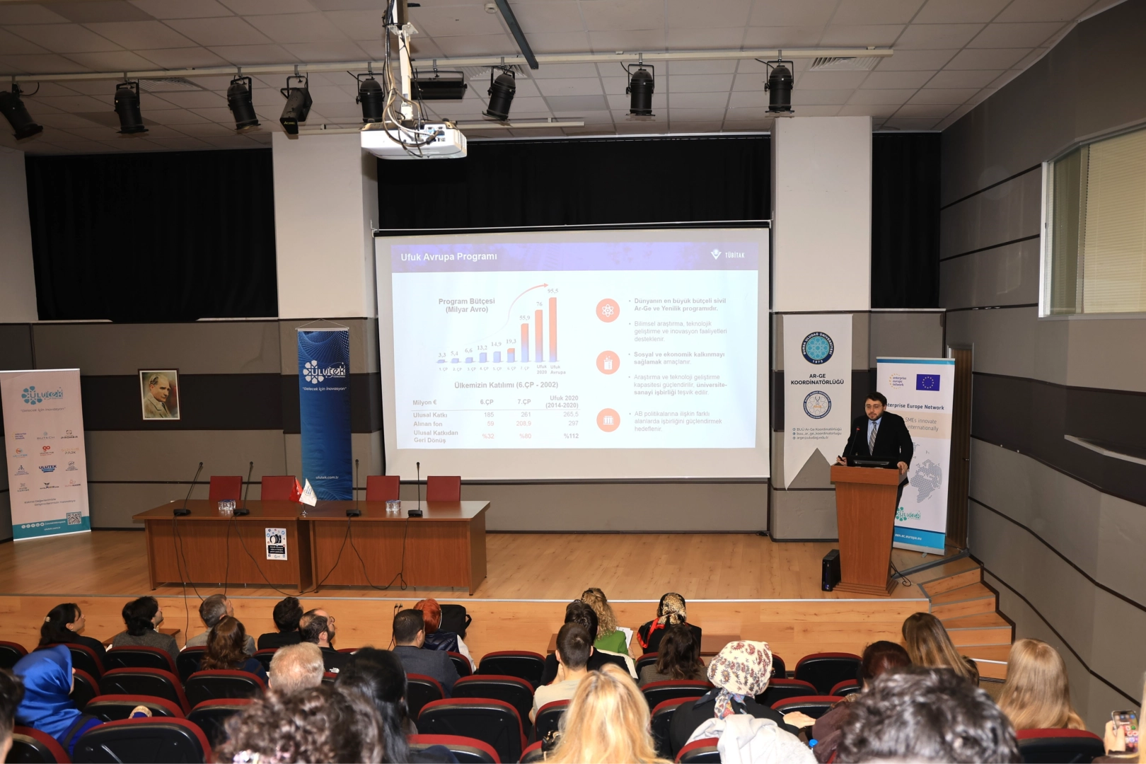 ULUTEK Teknopark ev sahipliğinde yapılan etkinlikte, araştırmacıların uluslararası hareketliliğini ve kariyer gelişimini destekleyen Marie Skodowska-CurieActions (MSCA) kapsamındaki burs ve araştırma imkanlarının yanı sıra; Sağlık, Dijital, Endüstri, Uzay, Gıda ve Biyoekonomi gibi kritik tematik alanlardaki güncel çağrılar detaylandırıldı. Katılımcılar, proje geliştirme süreçlerinden konsorsiyum kurma stratejilerine kadar pek çok teknik konuda birinci ağızdan bilgi alma fırsatı buldu.