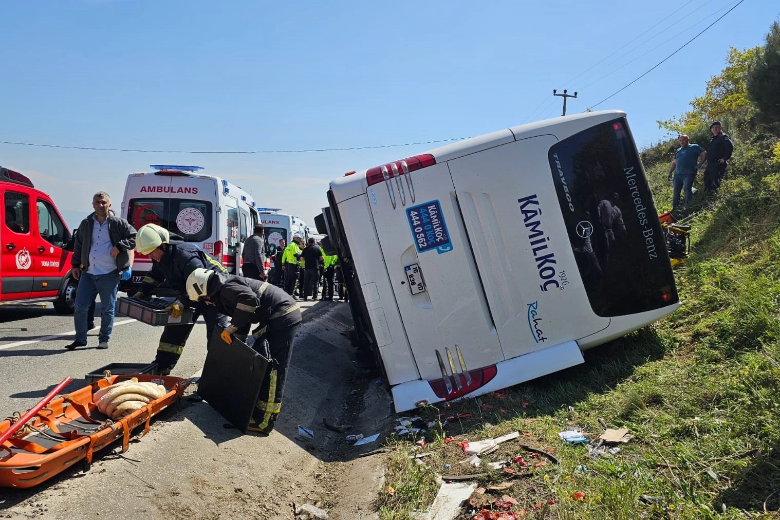 Bolu'dan İzmir'e gitmek üzere yola çıkan Kamil Koç firmasına ait Orhan Şentürk (60) idaresindeki 16 VD 838 plakalı yolcu otobüsü, yakınlarında sürücüsünün direksiyon hakimiyetini kaybetmesi sonucu yol kenarına devrildi.