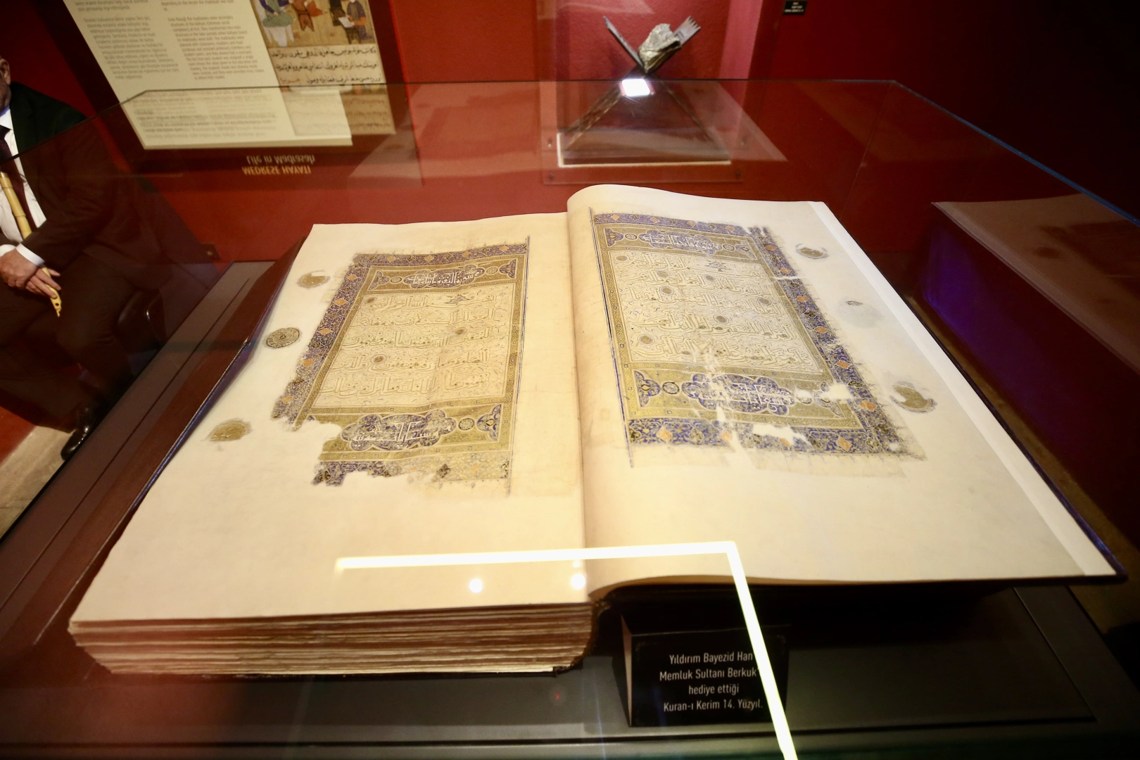 "Bu Kur'an-ı Kerim, Memlük Sultanı Berkuk tarafından Yıldırım Bayezid Han'a hediye ediliyor. Eserin 1380 yılında yazıldığı biliniyor ve 1396 yılında da Bayezid Han'a babası Murad Han'ın türbesinde okunsun diye hediye ediliyor. Bu hediyeleşmesinin arkasında çok önemli bir konu var. Haçlı ittifakına karşı iki Müslüman sultan, birliği, ittifakı ve kardeşliği tezyin etmemiz gerekiyor diye birbirine Kur'an-ı Kerim hediyesinde bulunuyor."