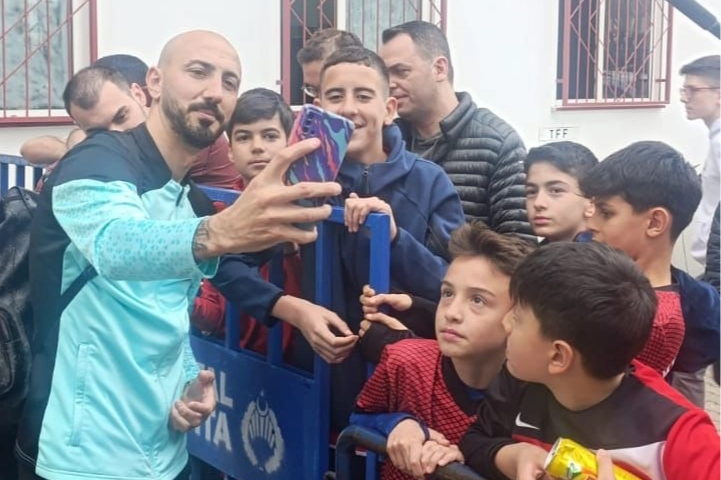 Stat dışında deneyimli kramponla fotoğraf çektirmek isteyen futbolseverler birbirleriyle yarıştı.
