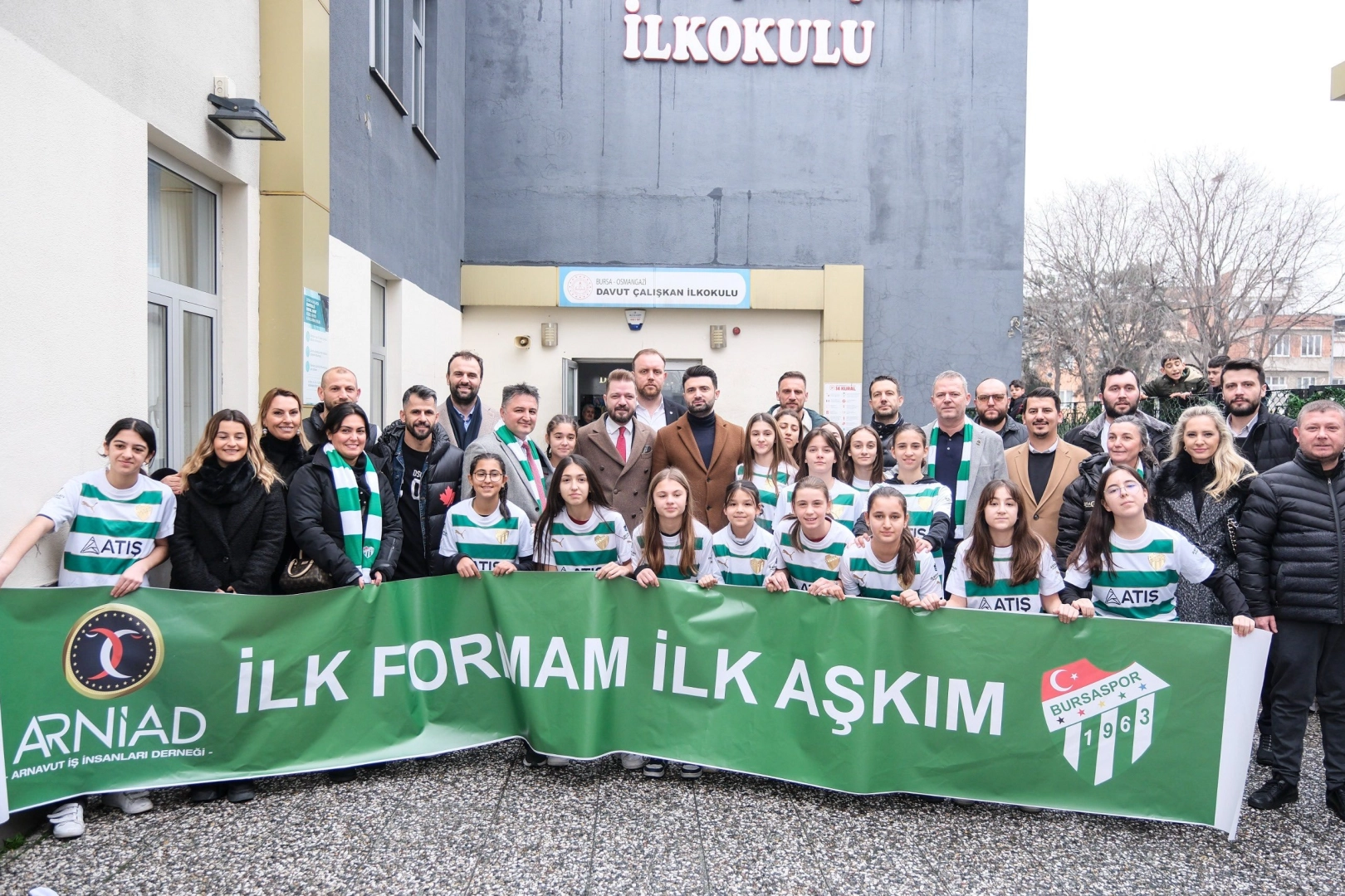 Arnavut İş İnsanları Derneğinin (ARNİAD) Bursaspor sevgisini çocuklara aşılamak amacıyla başlattığı "İlk formam, ilk aşkım" kampanyası kapsamında ilkokul öğrencilerine forma dağıtıldı.