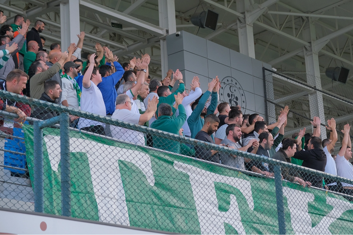 Yeşil Beyaz sevdalıları Ortahisar Yavuz Selim Stadyumu'nda tribünde kendilerini ayrılan bölümün tamamını doldurdu.