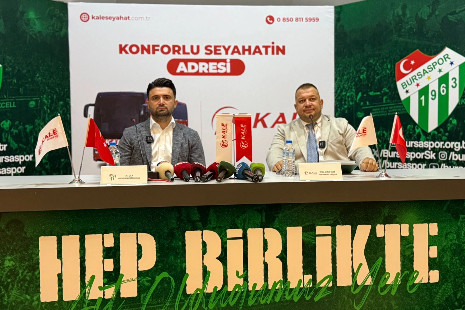 Kale Seyahat Yönetim Kurulu Başkanı Cemal Ali Rıza Çelebi ise, “Türk futbolunun en değerli markalarından biri olan Bursaspor’la yaptığımız sponsorluk anlaşmasının gururunu yaşıyoruz. Özel olarak tasarlanan otobüsümüzü Bursasporlu futbolcuların kullanımına sunuyoruz. Bursaspor taraftarına da ayrıcalıklı seyahatler sunacağız. Bursaspor, Türk futbolunun gururdur. 3 yılı sürecek olan bu işbirliğinde Bursaspor’un yanında dimdik duracağız. Bursa demek 16 demek. İndirimlerimiz de Bursaspor taraftarına bu oradan olacak.” şeklinde konuştu.