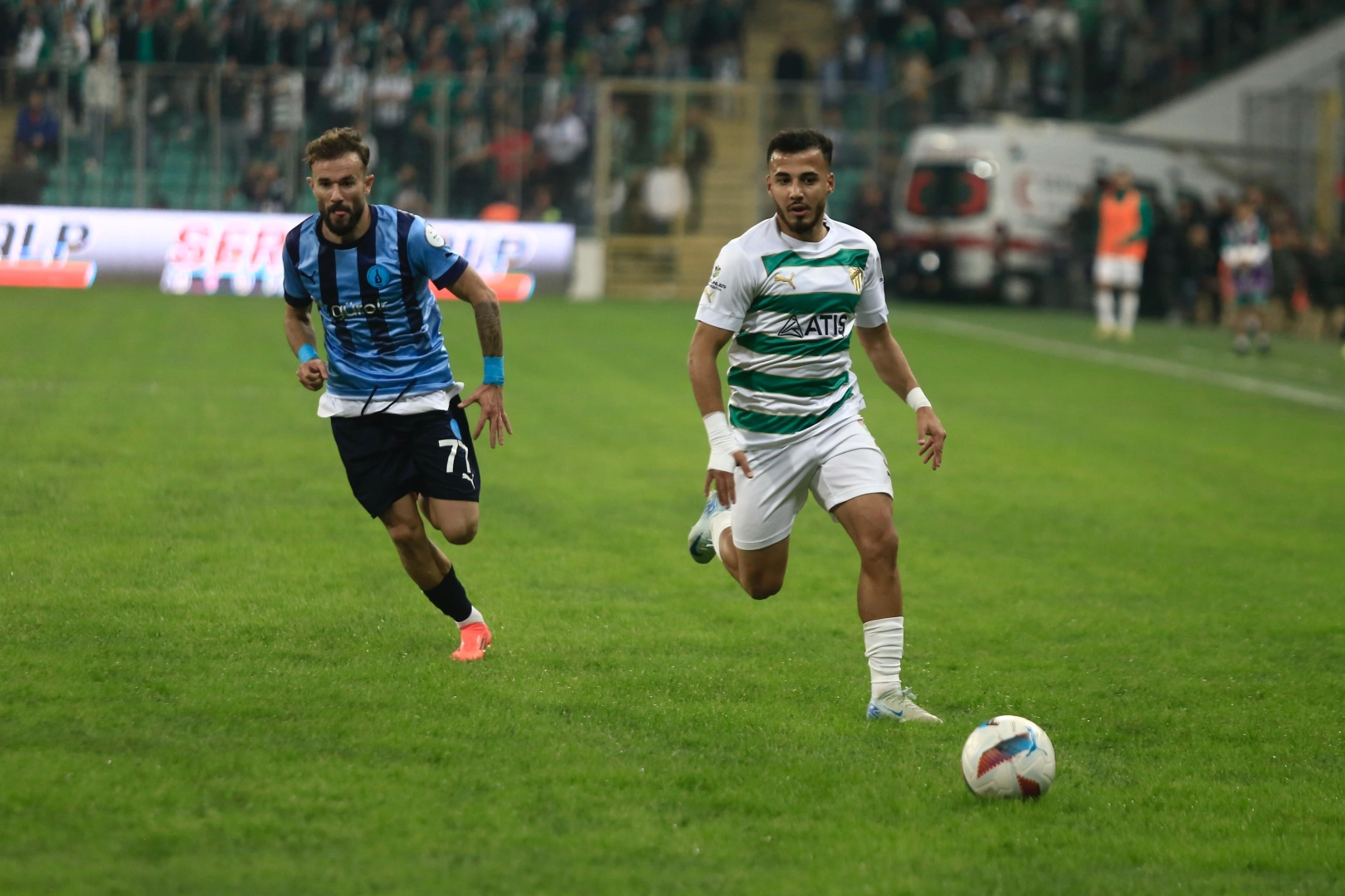 Yeşil Beyazlılar tribünü dolduran taraftarının önünde rakibini konuk etti. Bursaspor taraftarı maç öncesi 29 Ekim Cumhuriyet Bayramı kutlamaları çerçevesinde cumhuriyet coşkusunu doyasıya yaşadı.