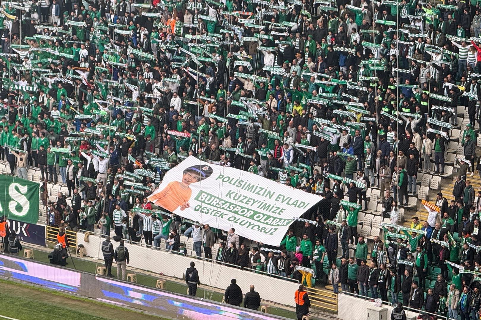 Bursaspor, Anadolu Üniversitesi maçı öncesi sahaya anlamlı bir pankartla çıktı. Yeşil Beyazlı futbolcular, DMD kas hastalığıyla savaşan Bursalı ailenin çocukları Kuzey Tanrıöver'e destek pankartı açtı. Aynı zamanda Bursaspor taraftarı da Teksas tribününde, "Polisimizin evladı Kuzey'imize Bursaspor olarak destek oluyoruz" pankartı açtı.