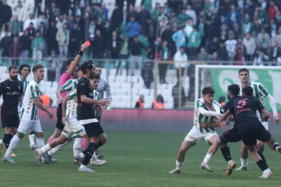 Bursaspor’da ise Bilal Güney direkt, Çağatay Yılmaz da ikinci sarı karttan kırmızı kart gördü.