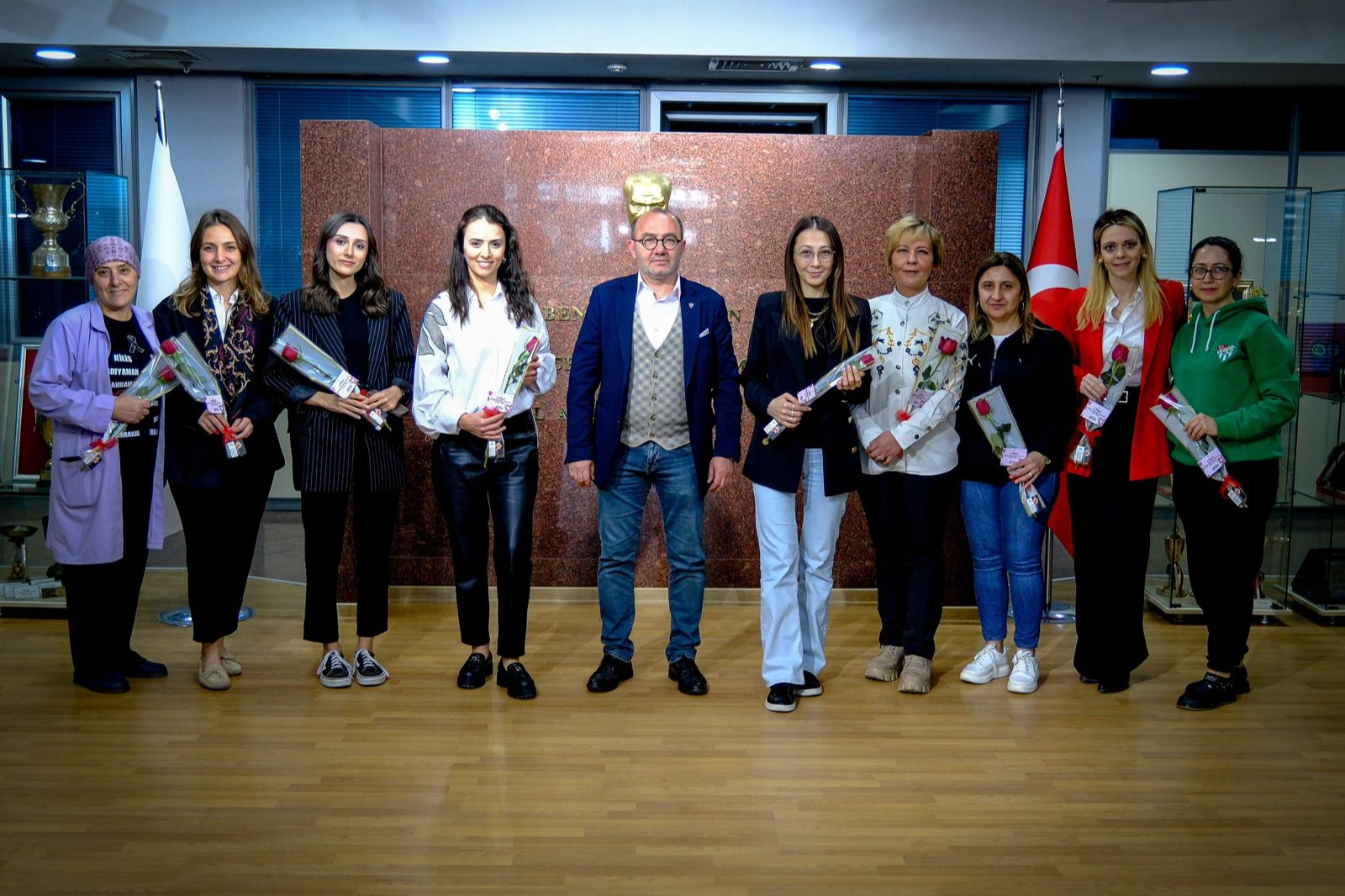Bursaspor yönetimi, kadın çalışanlarını unutmayarak anlamlı bir jeste imza attı. Enes Çelik başkanlığındaki yönetim kurulu, 8 Mart Dünya Kadınlar Günü kapsamında kadın çalışanlarına çiçek hediye ederek bu özel günü kutladı. Kulüp müdür Hüseyin Yeşilkavak’ın takdim ettiği çiçeklerle birlikte bu anı ölümsüzleştiren çalışanlar, yönetime teşekkür etti.