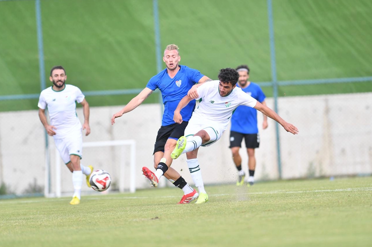 İkinci yarıya da iyi başlayan Bursaspor, 50. dakikada gole çok yaklaştı. Sertaç Çam’ın uzaktan sert vuruşu üst direkten döndü