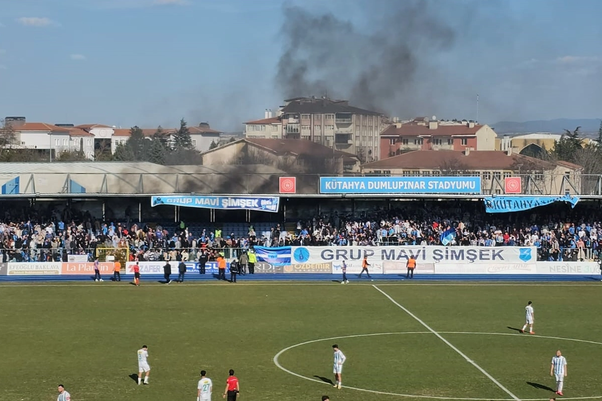 Belediye Kütahyaspor - Bursaspor mücadelesinin 87. dakikasında Dumlupınar Stadyumu'nun orta tribünlerinden dumanlar yükselmeye başladı.