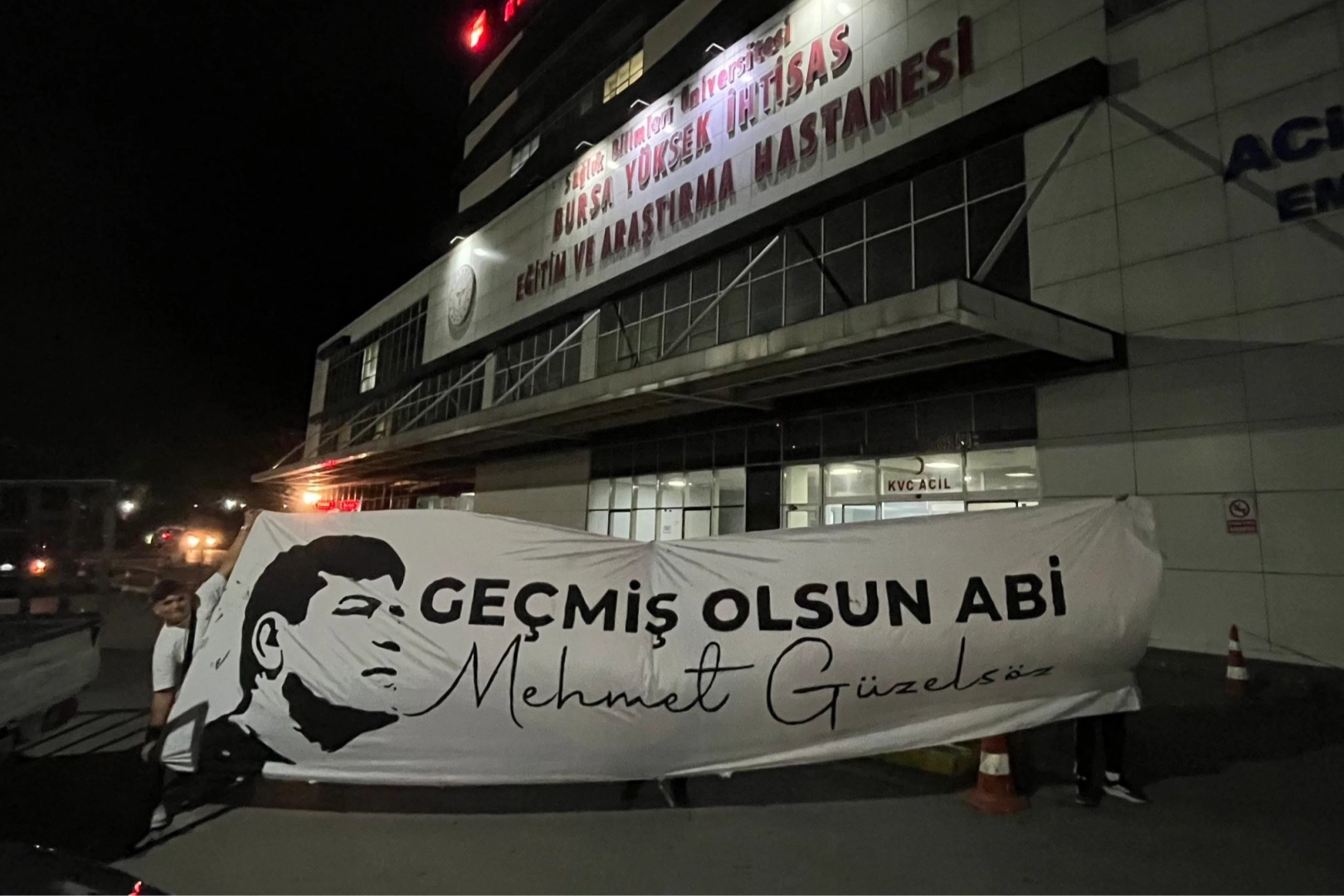 Bursa Yüksek İhtisas Eğitim ve Araştırma Hastanesi’nde tedavi gören Güzelsöz için pankart açan Teksas grubu, “Yıllardır her tribünde, her mücadelede yanımızdaydın... Şimdi sıra bizde. Ayağa kalkacaksın, yine omuz omuza olacağız. Geçmiş olsun Abi!” mesajını da paylaştı.