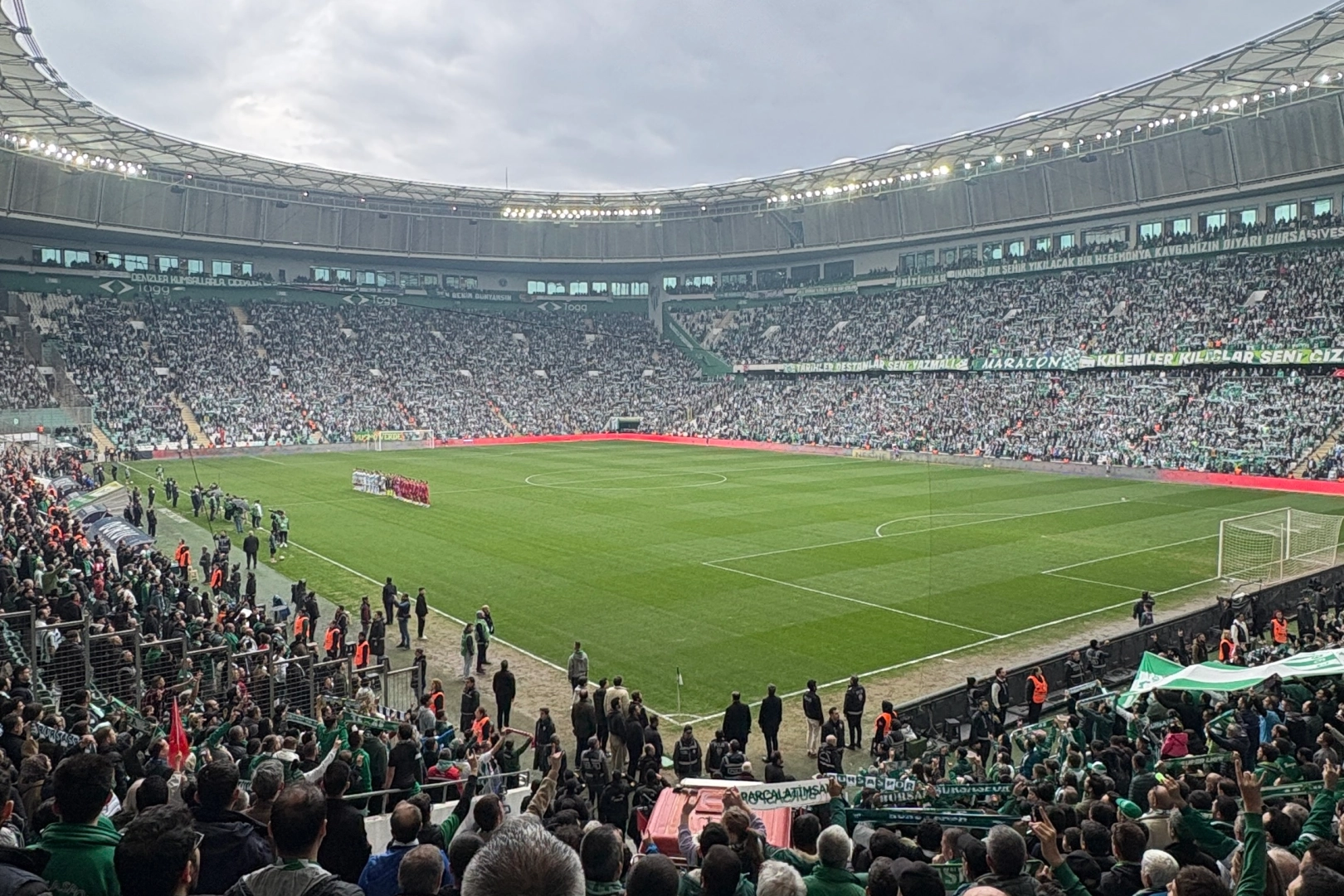 Rakip takım taraftarına yasak olması sebebiyle o bölgeye de Bursaspor taraftarının alınmasıyla harika anların yaşanmasına neden oldu.