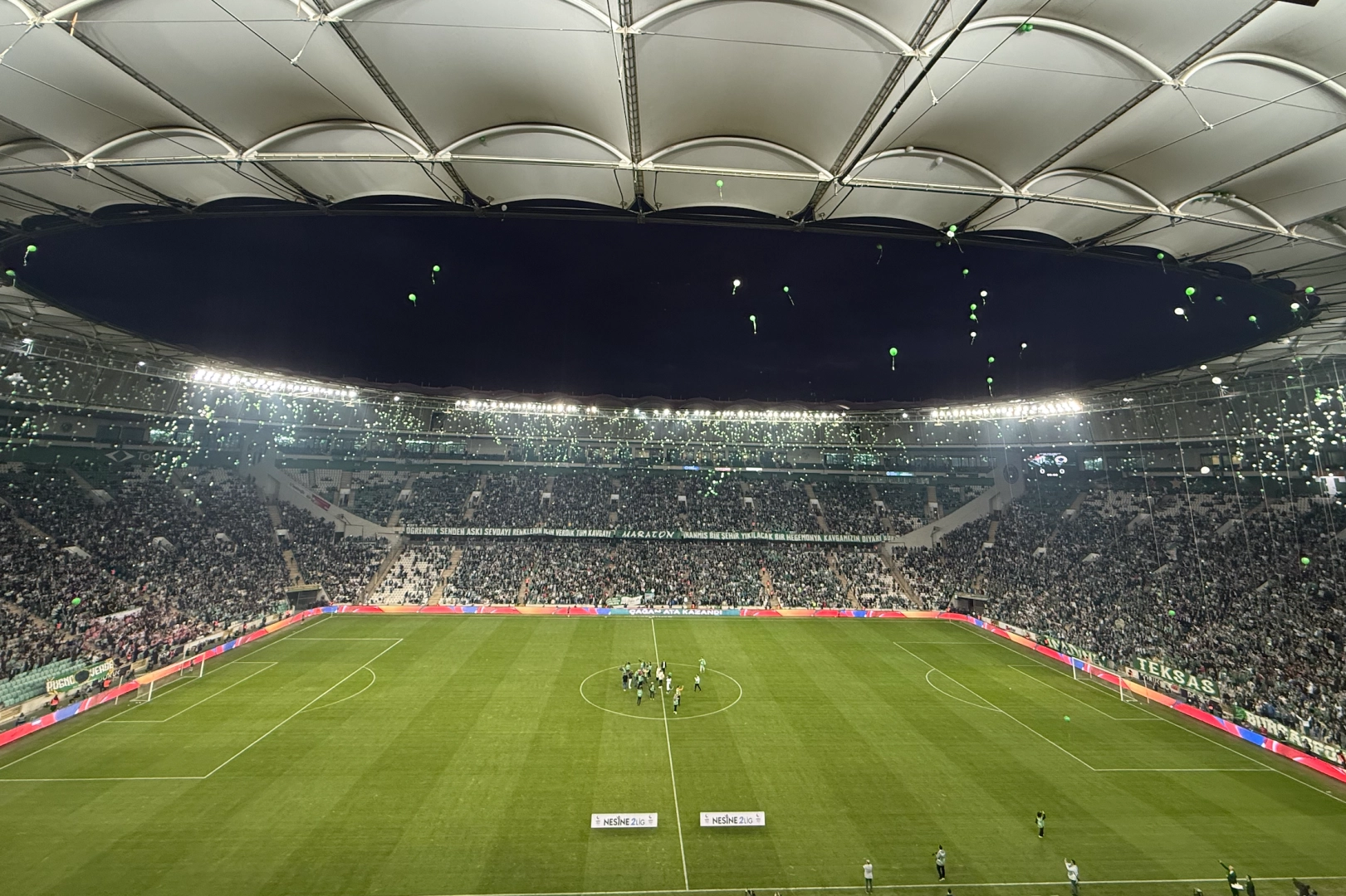Atatürk Spor Kompleksi Matlı Stadyumu’na gelen taraftarlar, yaklaşık 30 bin yeşil ve beyaz renkteki balonları gökyüzüne saldı.