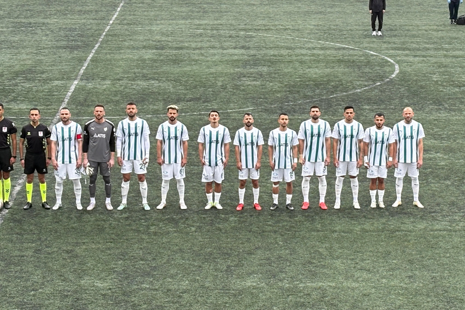Yeşil Beyazlı futbolcular sentetik zeminde oynanan maçta farklı kramponlarla mücadele etti. Oyuncular zemine alışmak için fazlasıyla zorlandı. Bursasporlu futbolcular tüm bu olumsuzluklara rağmen karşılaşmadan dört farklı galip ayrılmasını başardı.