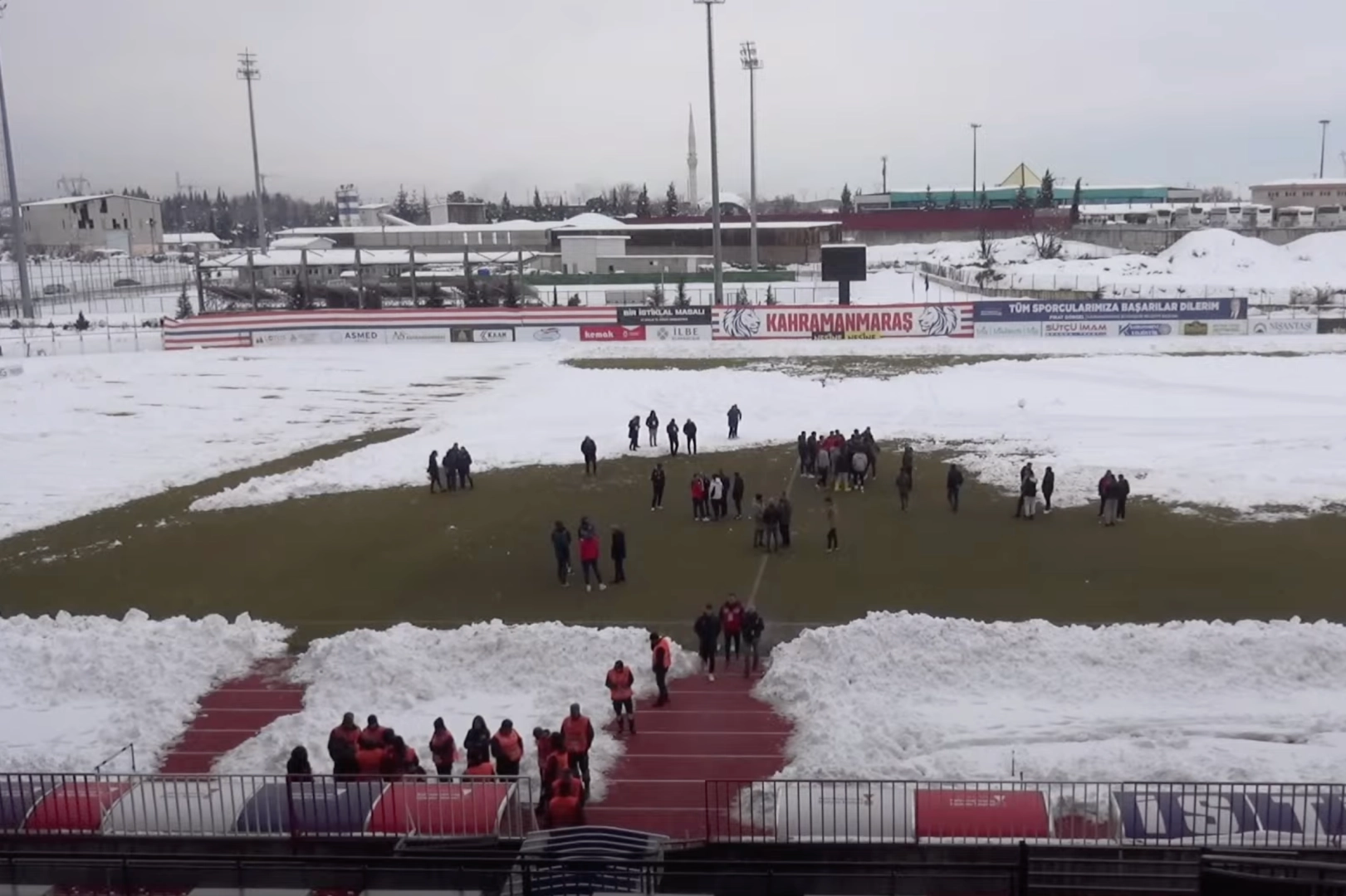 Yoğun kar yağışı sebebiyle ağırlaşan zemin, uzun uğraşlara rağmen maç oynanabilir hale getirilemedi.