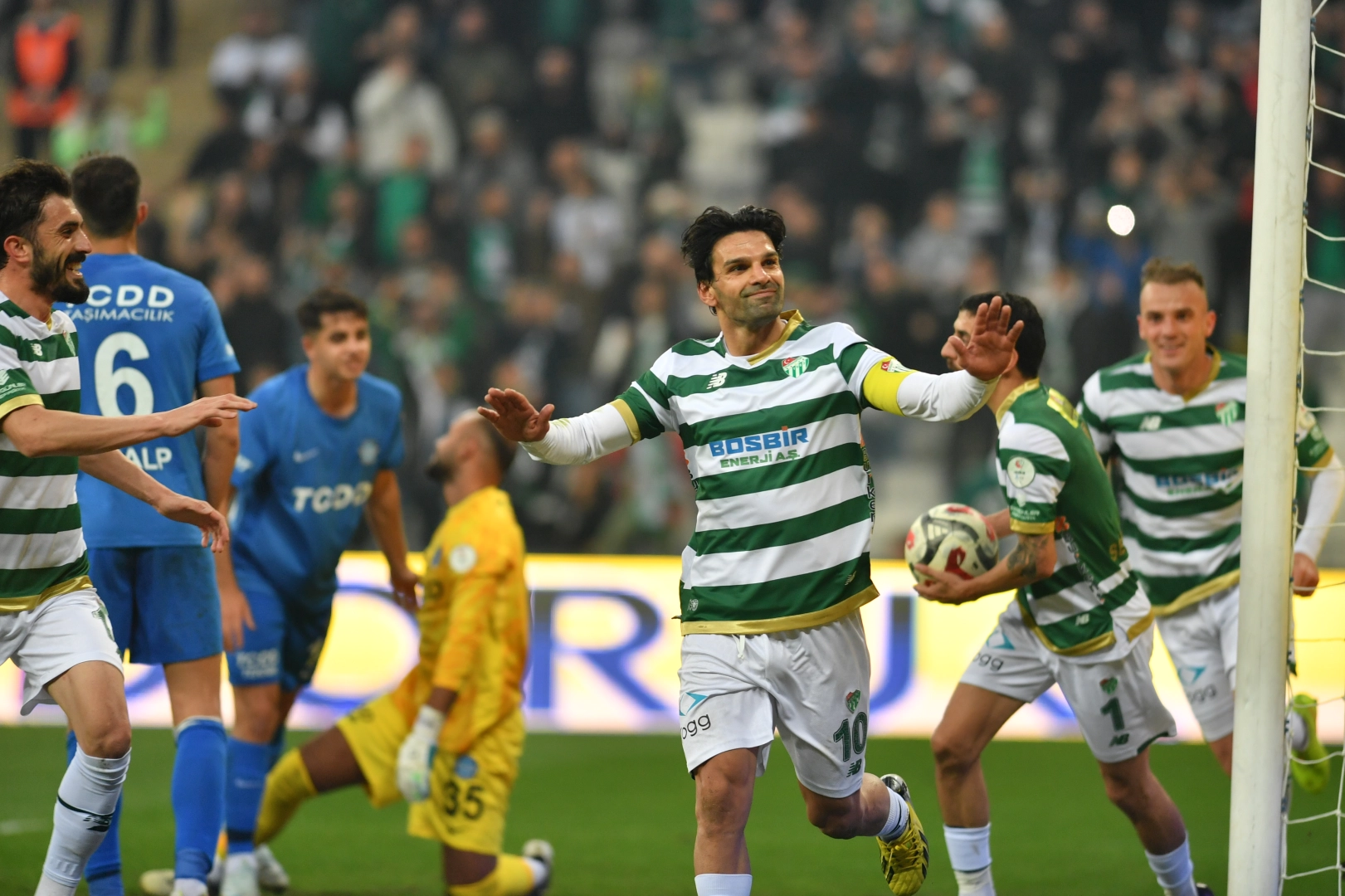 Nesine 2. Lig’in 15’inci haftasında Bursaspor sahasında Ankara Demirspor’u konuk etti. Atatürk Spor Kompleksi Matlı Stadyumu’nda oynanan karşılaşmaya yeşil-beyazlılar iyi başladı. Topa daha çok sahip olan ve rakip alanda çoğalan Bursaspor, 8’inci dakikada golü buldu. Orta alanda topu alan ve iyi sürükleyen Hakkı Türker, Muhammet Demir’le yaptığı verkaçla kaleci ile karşı karşıya kaldı. Tecrübeli futbolcu şık bir vuruşla topu ağlara gönderdi: 1-0. Öne geçen Bursaspor ataklarını daha da sıklaştırdı. Ancak bu anlarda da kalesinde de tehlikeler gördü. Maçın 17’inci dakikasında ceza sahası içinde yaşanan tehlikeyi Ertuğrul Ersoy, son anda savuşturmayı başardı.