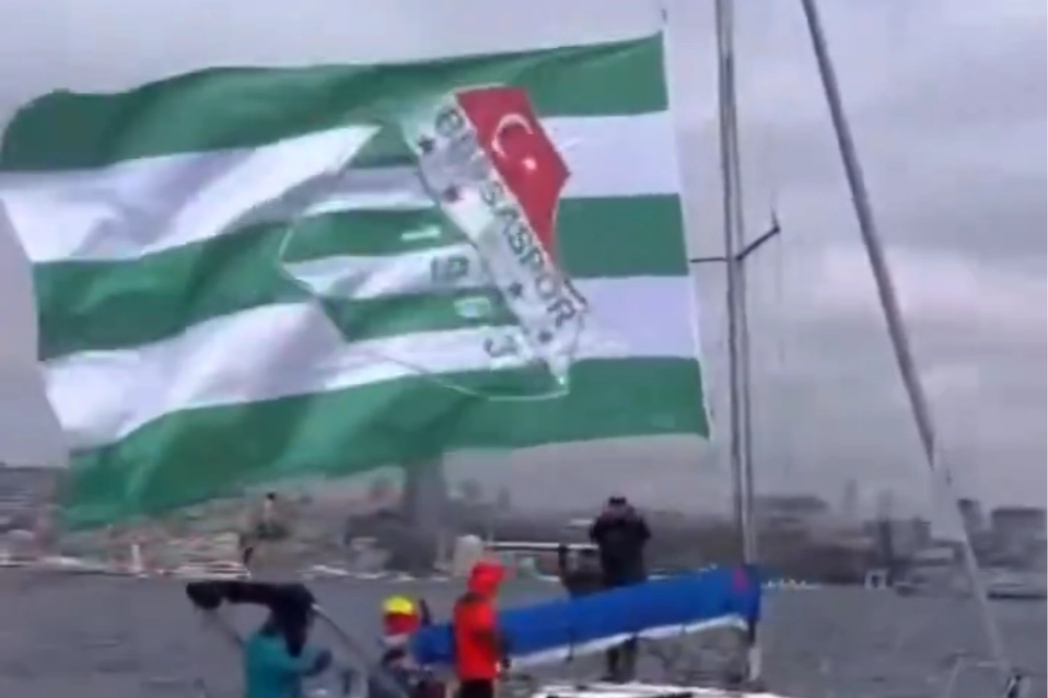 Bursaspor bayrağının dalgalandığı teknenin videosunu çeken 29 yaşındaki futbolcu, paylaştığı müzikle de tam not aldı.