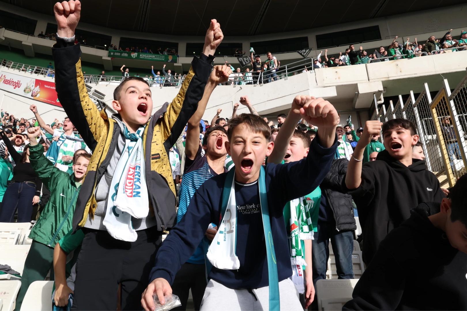 4-0’lık Bursaspor galibiyetiyle sona eren karşılaşmada yeşil beyazlı takıma destek veren çocuklar 3 puanı kutladı.