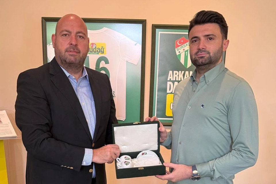 Bursaspor Başkanı Enes Çelik, Uludağ İçecek Yönetim Kurulu Başkanı Ömer Kızıl’a teşekkür ziyaretinde bulundu.