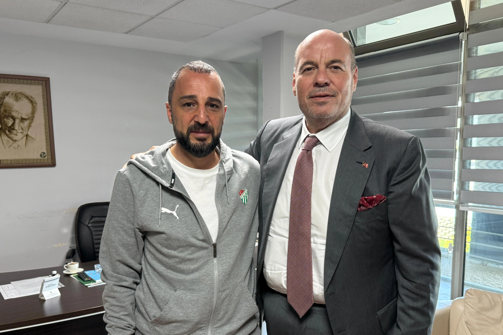 Bursaspor eski Başkanı Levent Kızıl Enes Çelik’e Özlüce İbrahim Yazıcı Tesisleri’nde yaptığı ziyarette teknik direktör Adem Çağlayan’la da bir araya geldi. Adem Çağlayan’la tanışan Kızıl, genç teknik adamı şampiyonluktan dolayı kutladı. Adem Çağlayan Levent Kızıl’a tebriklerinden dolayı teşekkürlerini sundu.