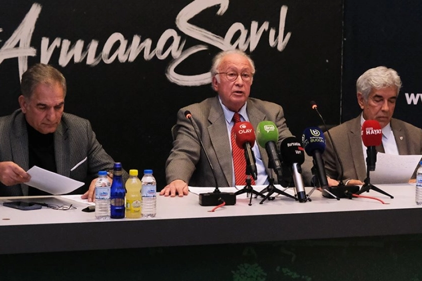 Bursaspor Başkanı Sinan Bür, Genel Sekreter Erkan Öncel ve Mali ve İdari İşlerden Sorumlu Yönetim Kurulu Üyesi Sinan Oral basın toplantısı yaptı.