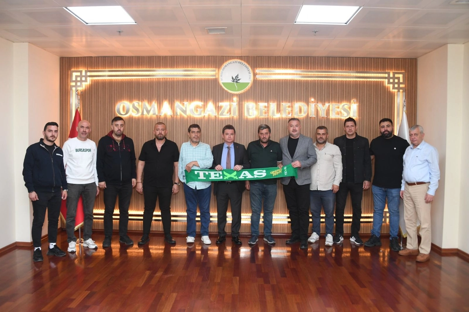 Aydın’ı makamında ziyaret eden Teksas üyeleri, Teksas atkısıyla da poz verdi. Teksas’tan yapılan açıklamada da, “Osmangazi Belediye Başkanı Erkan Aydın’a kulübümüze yaptığı destekleri için teşekkür ederek ziyaret gerçekleştirdik.” ifadelerine yer verildi.
