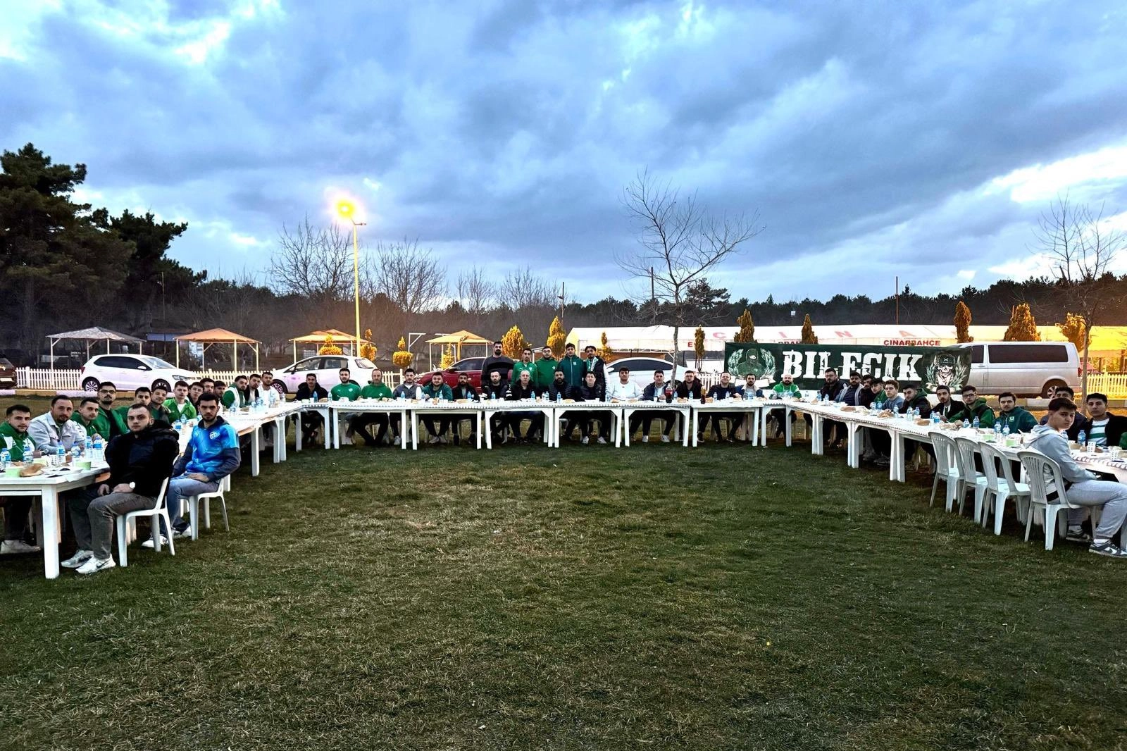 Bursasporlu taraftarlar iftar organizasyonlarına devam ediyor. Yeşil Beyaz sevdalıları bu kez Bilecik’te bir araya geldi. Teksas’tan yapılan açıklamada, “Bursaspor’un vazgeçilmez bir parçası olan Ünitimsah’ın Bilecik temsilciliği tarafından düzenlenen iftar yemeği organizasyonuna katılım sağladık. Birlik ve beraberliğin en güzel örneklerinden birini yaşadığımız bu özel gecede, Bursaspor sevdalıları olarak aynı sofrada buluşmanın mutluluğunu paylaştık. Organizasyonda emeği geçen herkese teşekkür ederiz. Biz birlikte güçlüyüz!” ifadelerine yer verildi.