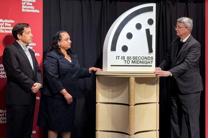 ABD Atom Bilimcileri Bülteni Bilim ve Güvenlik Kurulu, "insanlığın yok olmaya ne kadar yakın olduğunu" değerlendiren yıllık duyurunun yapıldığı canlı yayında Kıyamet Saati'nin kadranını 00.00'a 85 saniye kalaya ayarlayarak, tarihindeki en ileri noktaya getirdi
