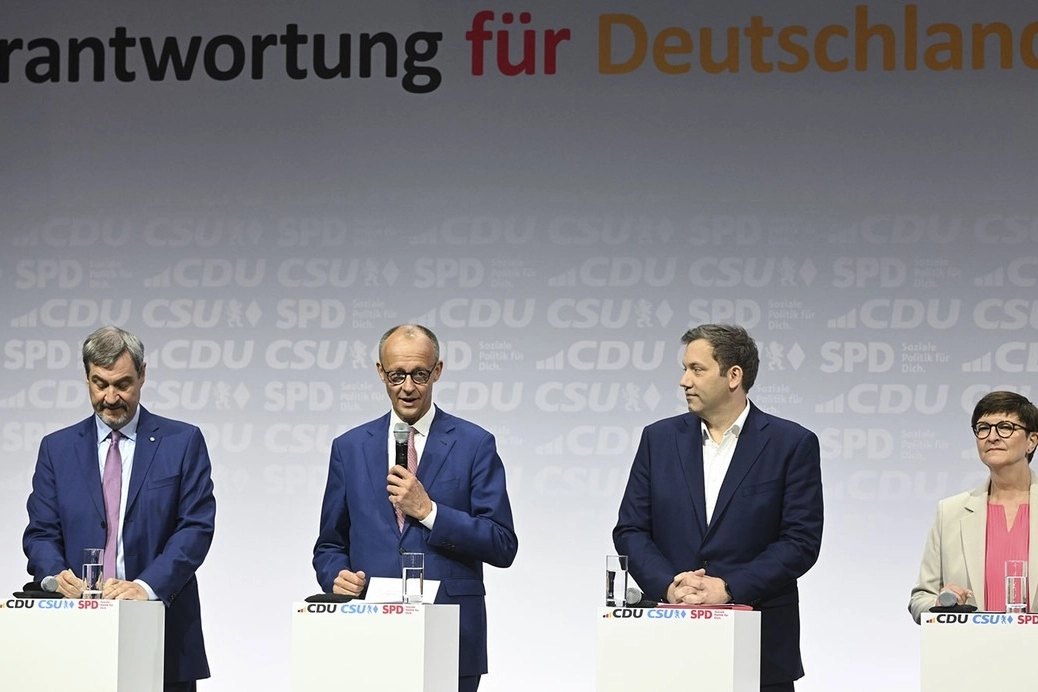 Koalisyon hükümetinde Başbakanlığı üstlenecek Hristiyan Demokrat Birlik (CDU) Partisi Genel Başkanı Friedrich Merz, Hristiyan Sosyal Birlik (CSU) Partisi Genel Başkanı Markus Söder ve SPD'nin eş başkanları Lars Klingbeil ile Saskia Esken, Berlin'de düzenlenen törende "Almanya için sorumluluk" başlığını taşıyan 144 sayfalık koalisyon sözleşmesine imza attı.