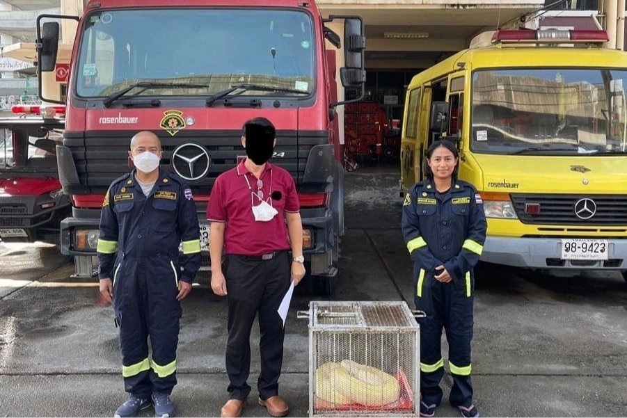 Tayland’ın başkenti Bangkok’un Huamark bölgesinde bir sokakta dev bir piton görüldü. Olay yerine gelen itfaiye ekipleri ile uzman bir ekip tarafından kısa sürede yakalanan yaklaşık 4 metre uzunluğundaki yılanın, zehirsiz ve egzotik bir tür olan albino pitonu olduğu belirtildi.