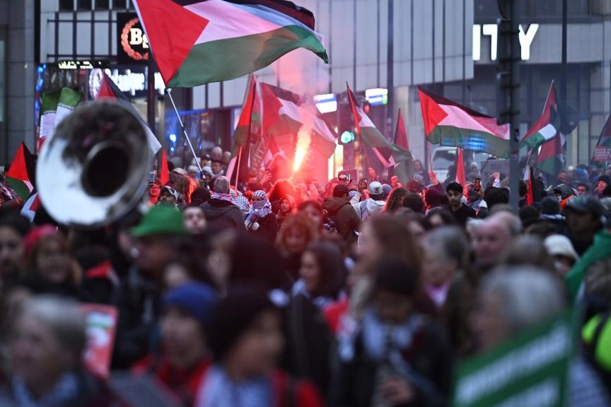 "Sivilleri bombalamak meşru müdafaa değil. Soykırıma hayır de!", "Kurtuluşa erişene kadar direniş!" ve "Filistin için ayağa kalkın!" yazılı dövizler taşıyan göstericiler, Belçika hükümetini İsrail'e karşı kapsamlı askeri ambargo uygulamaya davet etti.