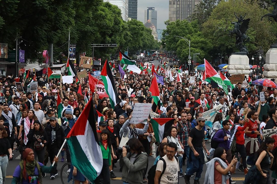 Meksika'nın başkenti Meksiko'da bir araya gelen Filistin destekçileri, Gazze'de ateşkesin "en hızlı şekilde" ilan edilmesi için gösteri düzenledi.